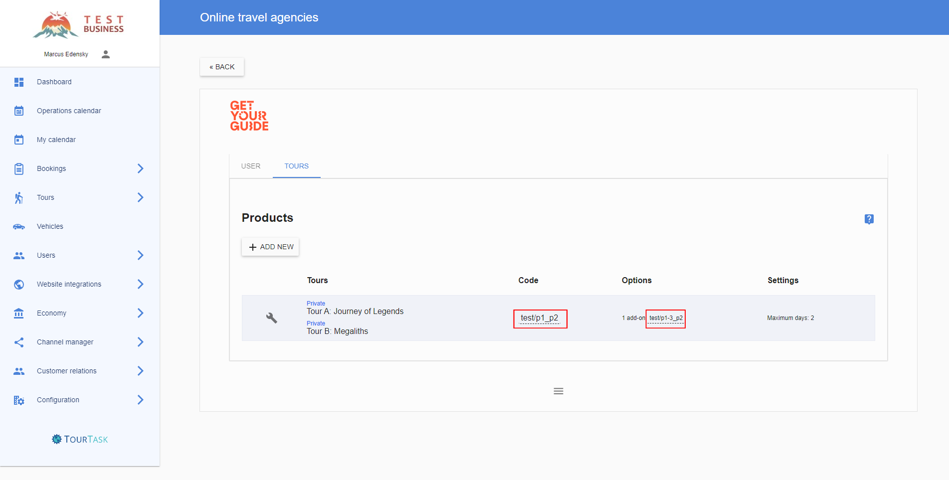 - Your GetYourGuide product option is now connected to TourTask! You must now repeat this process with all options for all of your GetYourGuide products.