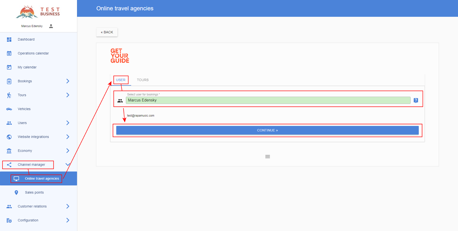 In the GetYourGuide purchase flow, space will be reserved in your system in the form of a temporary unconfirmed booking before the customer pays and the booking is confirmed. Since the customer details are unknown at this point, these unconfirmed bookings will be created under a specific user in your system. Please specify this user under Channel Manager > Online travel agencies > GetYourGuide > User. Notifications of when these unconfirmed bookings are created and expire will be sent to this user. If you wish, you may create a new user for this, to not receive these notifications in your main user account.