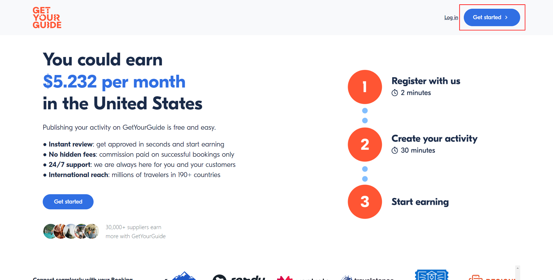 Go to this link to sign up as an activity supplier at GetYourGuide: